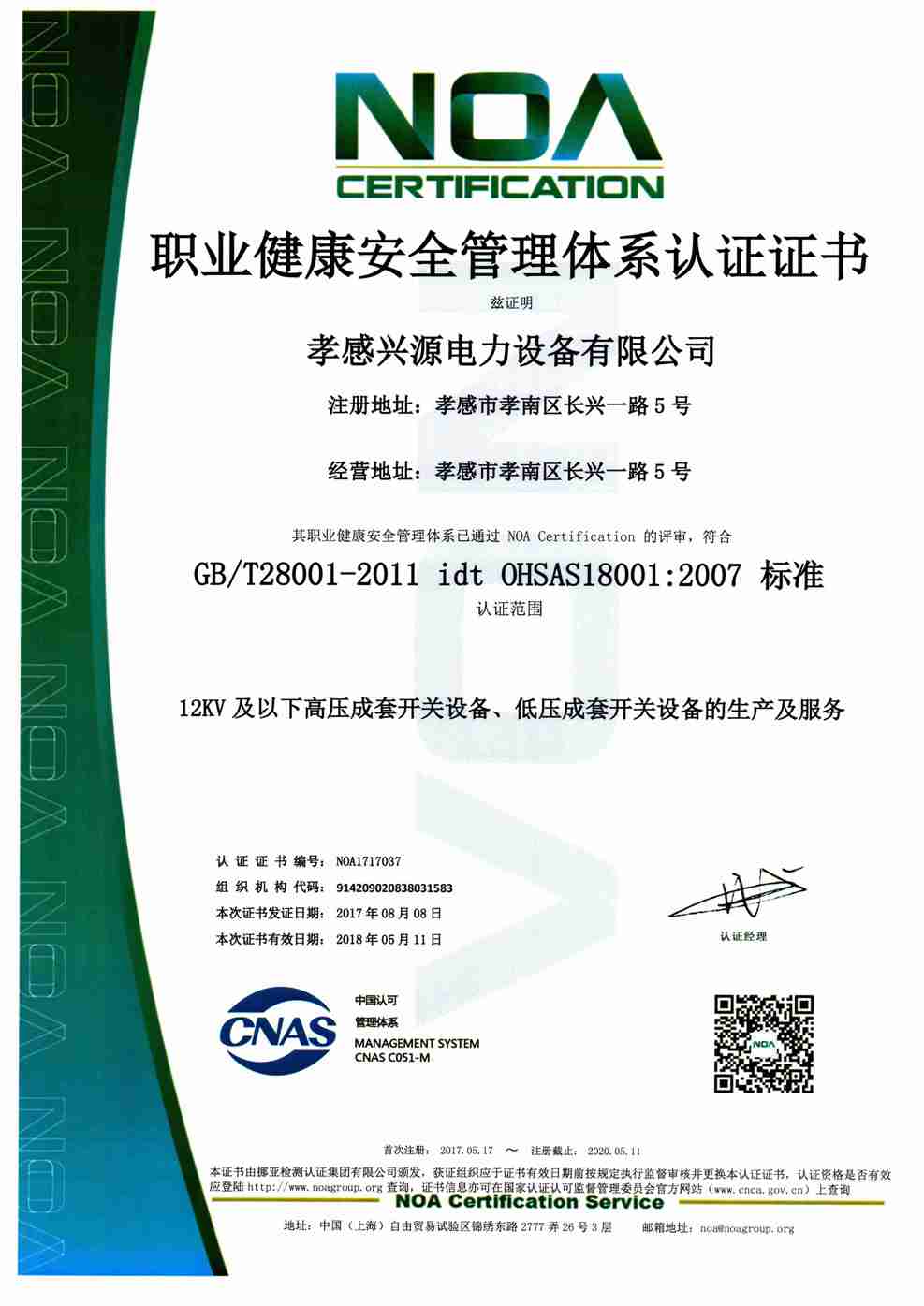 • 職業(yè)健康管理體系證書